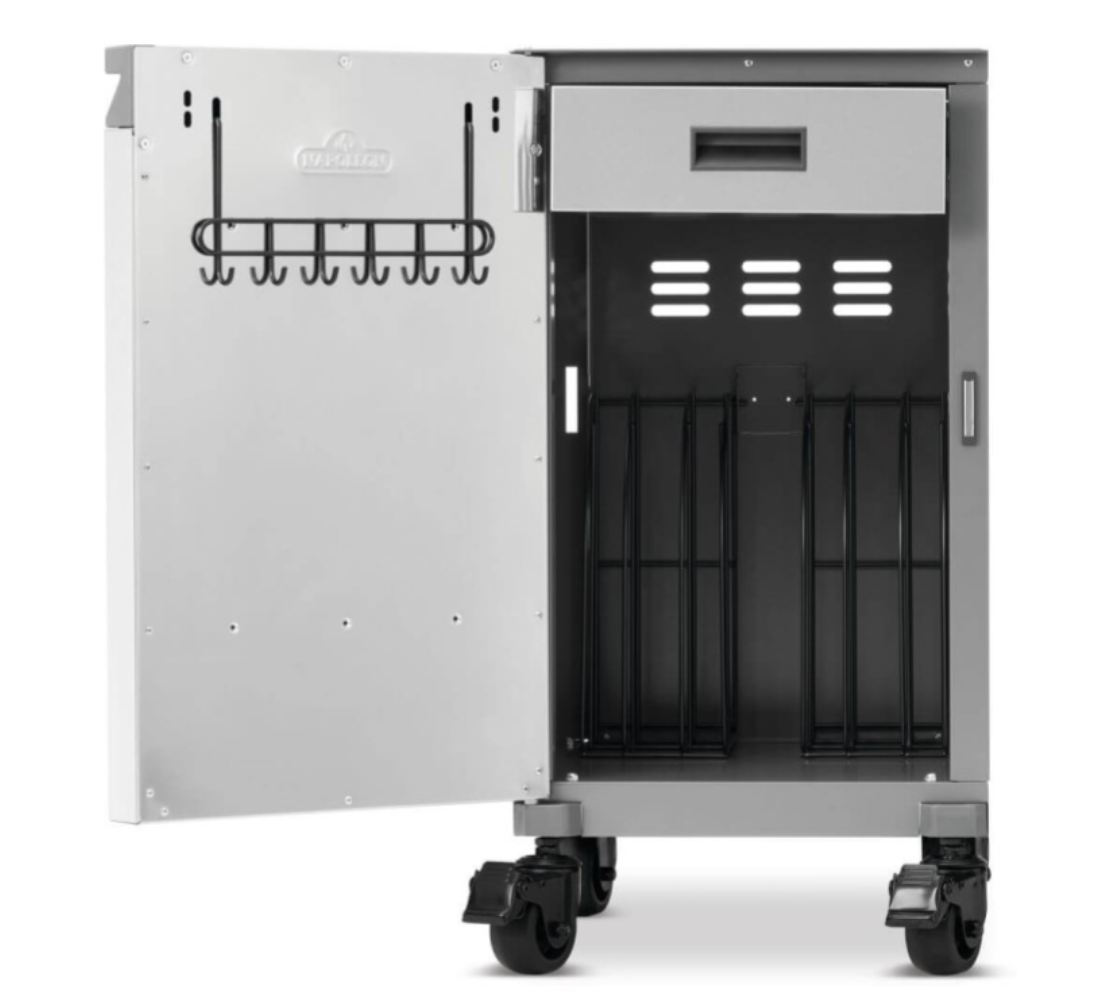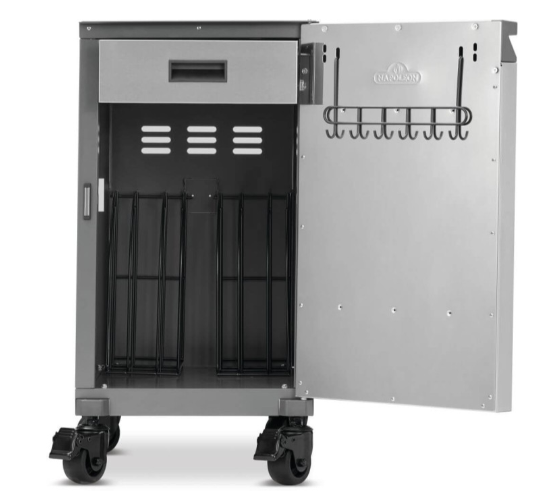 Upgrade your grilling setup with the Napoleon Prestige® Under Grill Storage Carts, the perfect blend of smart organization and premium design. Crafted from high-quality stainless steel, these free-floating storage cabinets integrate effortlessly with your Prestige® Series grill, locking securely in place for a sleek outdoor kitchen look. With four smooth-rolling, locking caster wheels, the entire unit moves as one, offering both stability and flexibility.