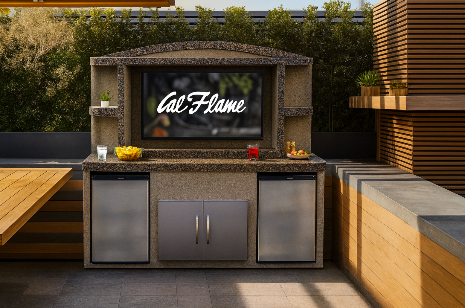 Introducing the Cal Flame ODC-1 Paradise Outdoor Entertainment Center — an outdoor entertainment solution like no other. Designed to elevate your backyard gatherings, this unit combines style, storage, and technology in one stunning centerpiece.