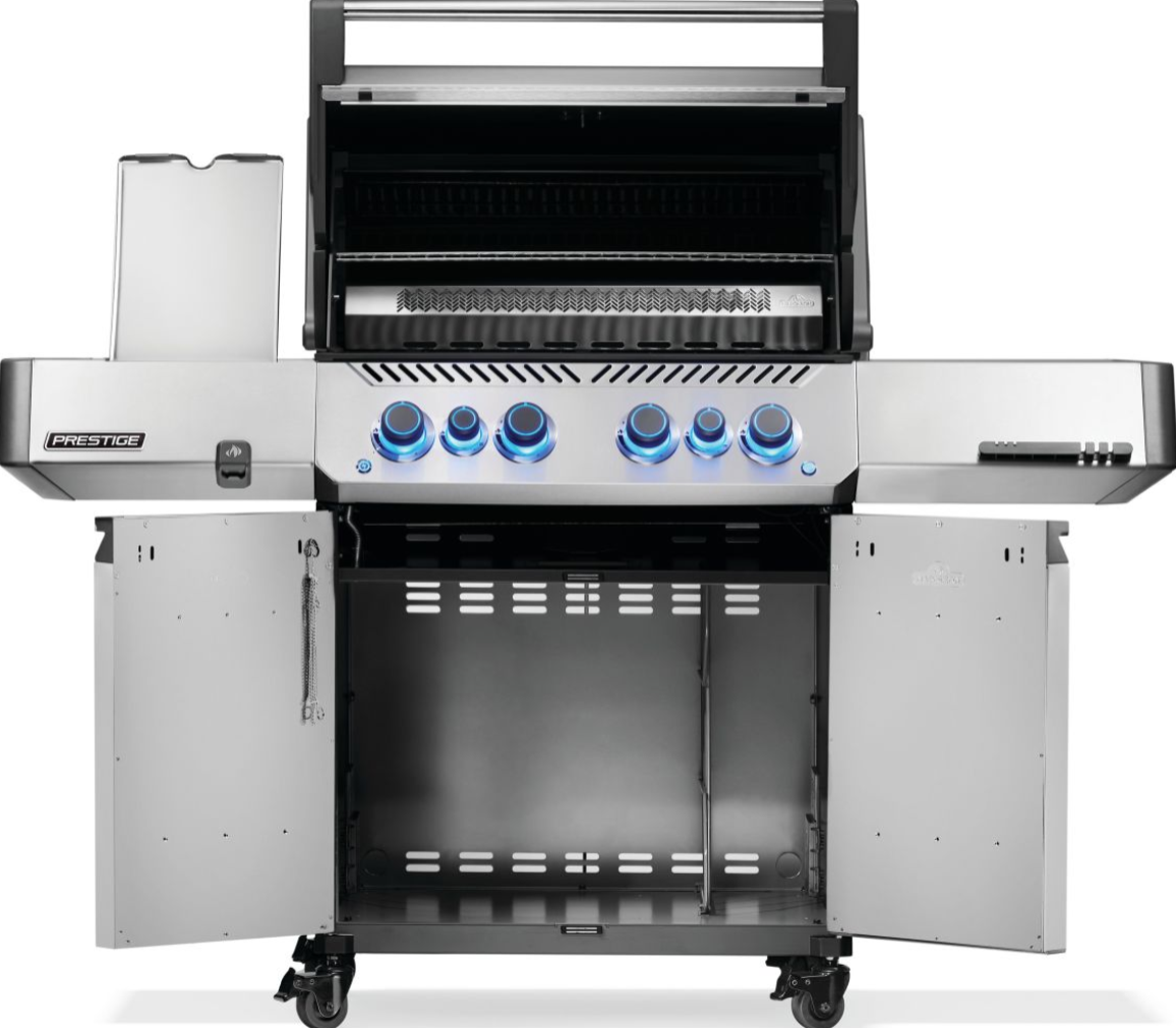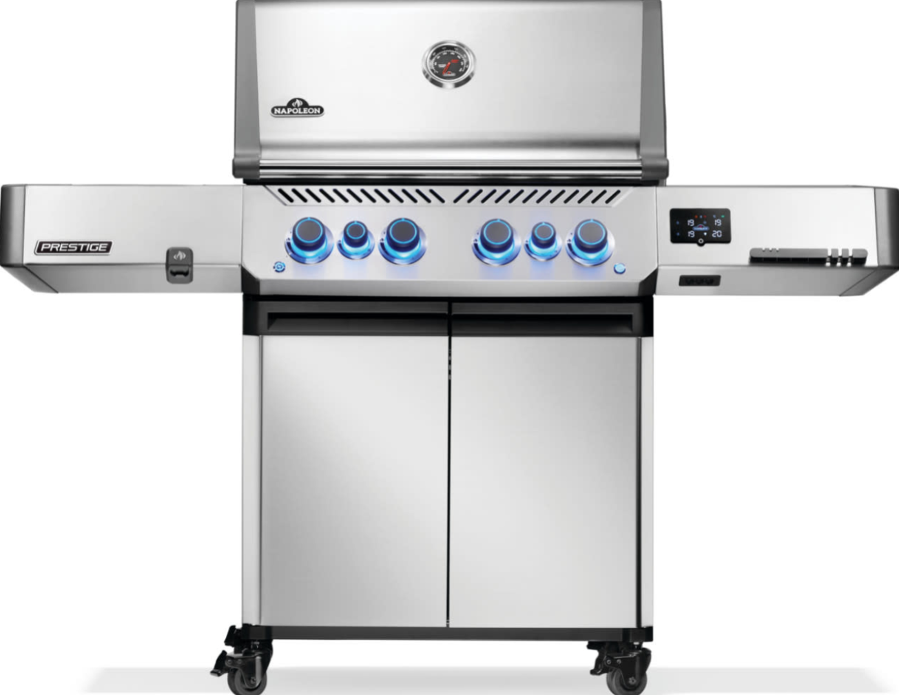 The Napoleon Prestige® 500 RSIB Series redefines professional backyard grilling with a sleek stainless steel design, enhanced performance, and luxurious features. Built for long-term durability and all-weather resistance, both grills in this lineup feature powerful infrared rear and side burners—ideal for achieving steakhouse-quality sears or slow-roasting meals to perfection. Each grill includes a heavy-duty rotisserie kit, a stow-away warming rack, and hidden tool hooks to maximize your prep and cooking space.