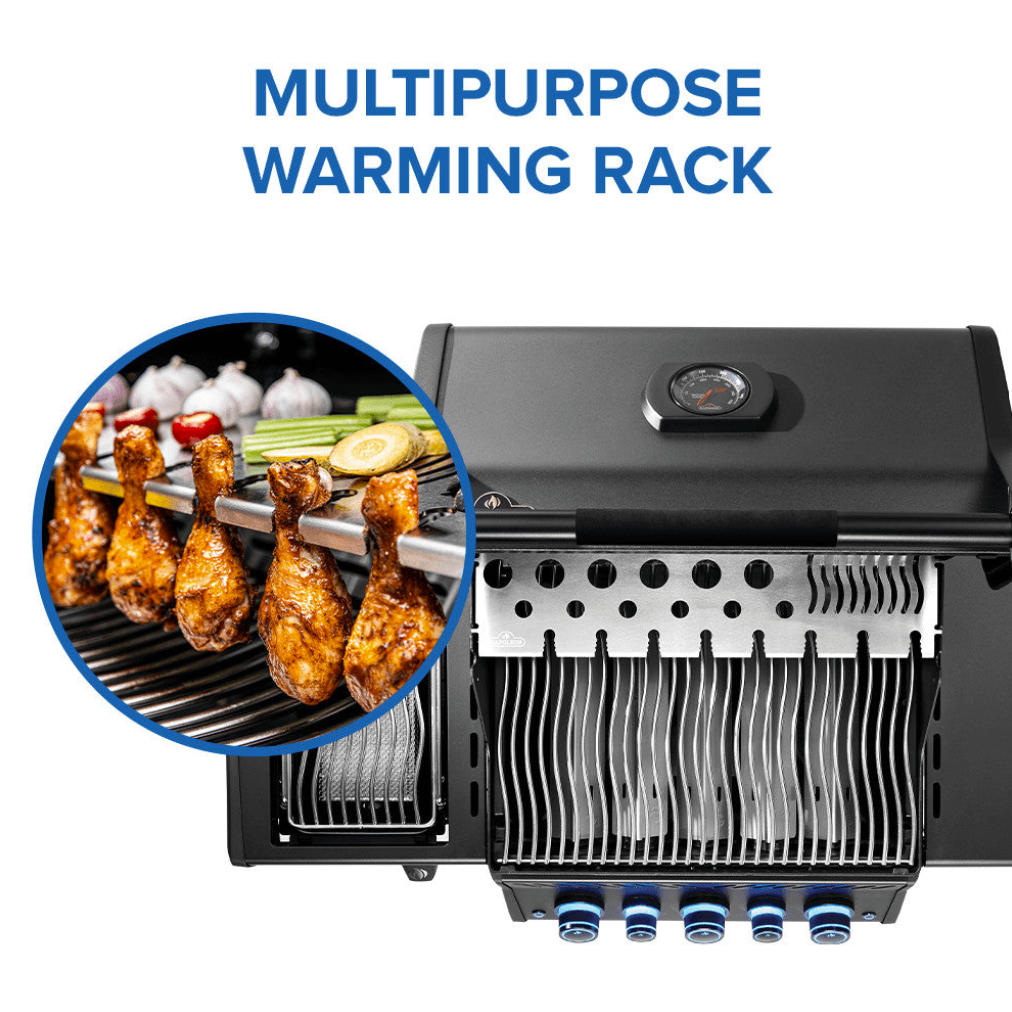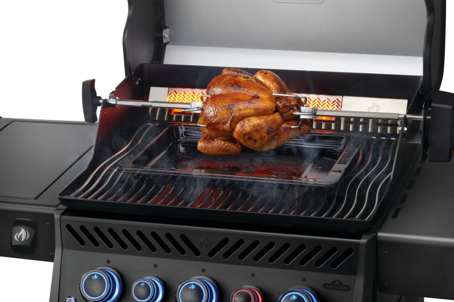 Rear Infrared Rotisserie Burner: Evenly roasts meats to perfection (rotisserie kit sold separately).