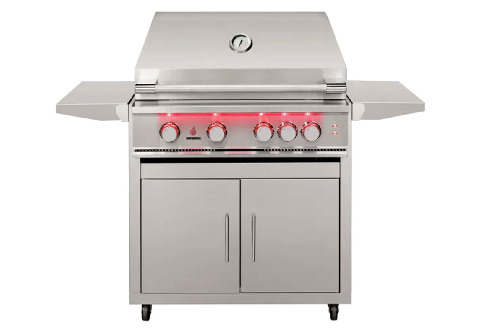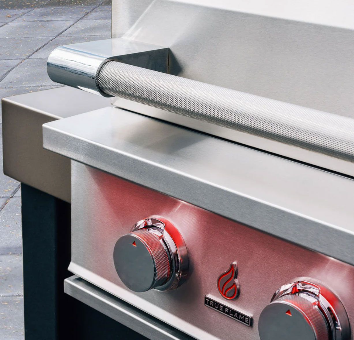 Elevate your outdoor cooking with the True Flame 32″ 4-Burner Gas Grill with Deluxe Cart, combining professional-grade grilling performance with the convenience of a premium stainless steel mobile base. Crafted from durable #304 stainless steel, this 32″ grill delivers precise heat control, perfect sear marks, and long-lasting reliability. The Deluxe Cart transforms your grill into a freestanding showpiece, offering exceptional storage, mobility, and workspace — ideal for both casual and professional chefs.