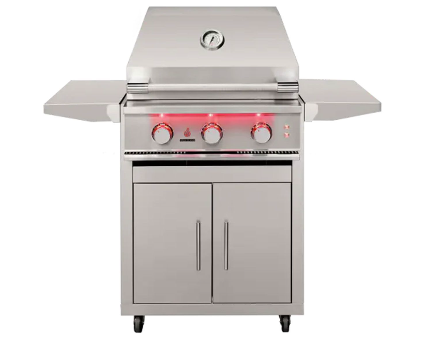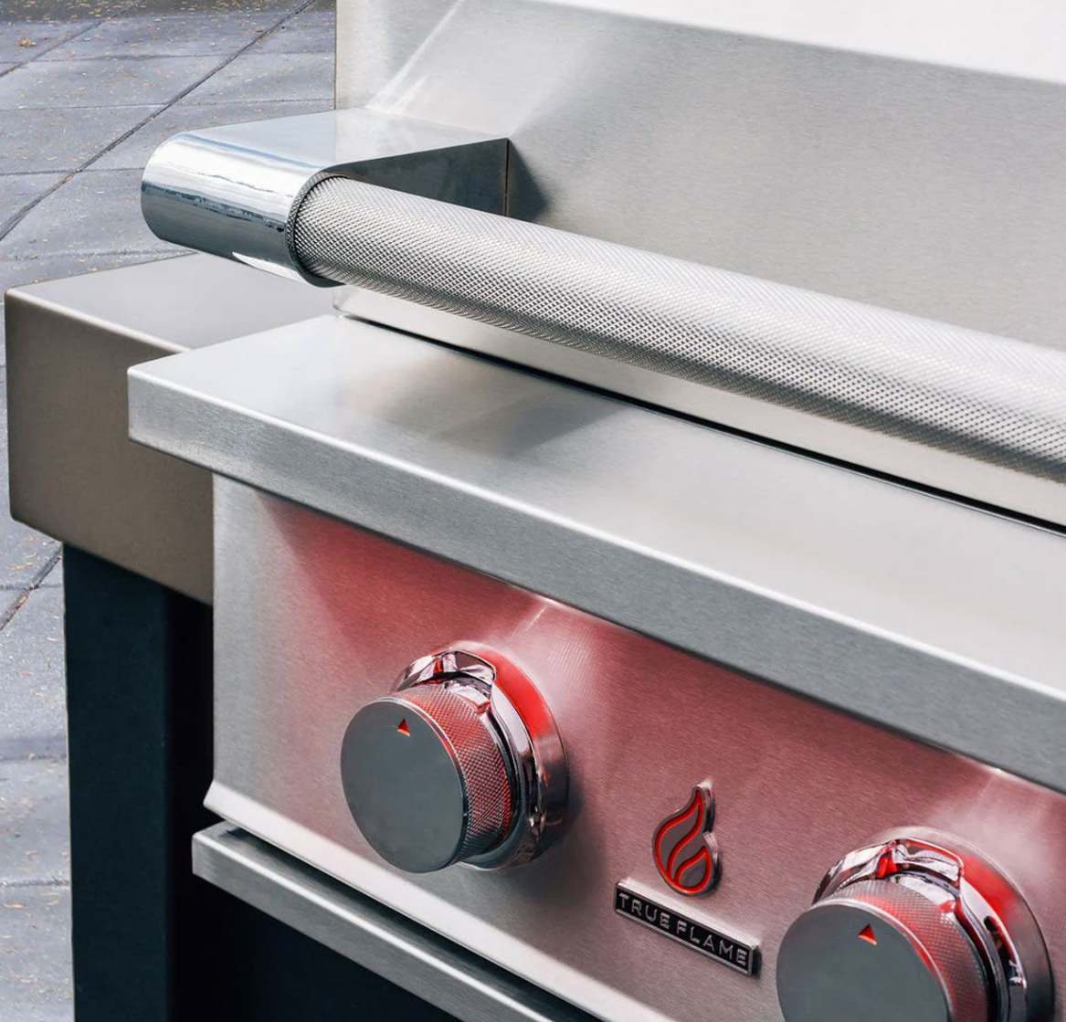The True Flame 25″ 3-Burner Gas Grill with Deluxe Cart delivers professional-grade performance in a compact footprint, making it the perfect choice for smaller patios or outdoor kitchens that demand big flavor. Built from durable #304 stainless steel, this grill is designed to withstand the elements while offering premium cooking power and precision. With luxury LED lighting, square stainless steel grates, and heat-zone separators, gourmet grilling has never been easier.