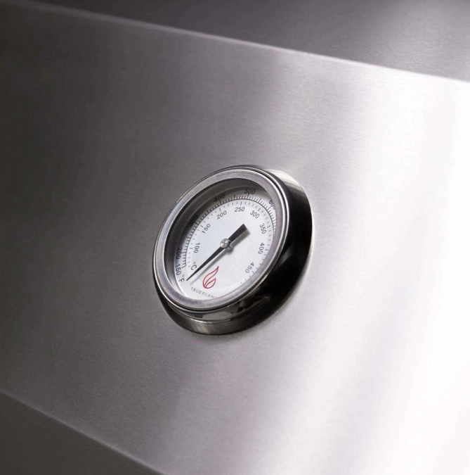 Paired with the True Flame 25″ Deluxe Grill Cart, this setup transforms your grill into a freestanding unit with mobility, storage, and convenience. The cart includes folding side shelves, propane tank storage, magnetic latches, locking castors, and an integrated paper towel holder — all engineered to keep your outdoor cooking space organized and safe. Available in Liquid Propane or Natural Gas, this compact powerhouse is backed by the Gold Standard Lifetime Warranty.