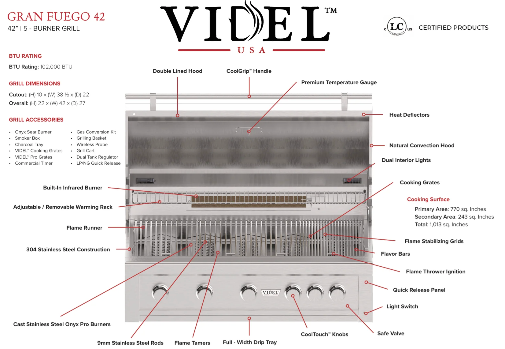 The Gran Fuego 42″ is more than just a grill—it’s a statement piece for those who demand professional-grade power, elegant design, and lasting performance. Ignite your passion. Elevate your cooking. Impress with every flame.