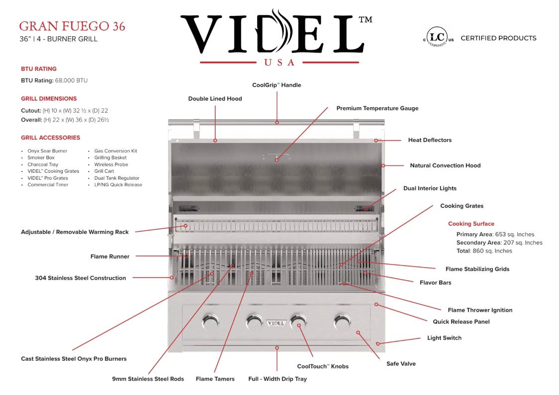 Its standout design elements include the HeatWave™ Chamber for optimized heat distribution, CoolTouch™ knobs and CoolGrip™ handle for safety, and a Quick Release Panel for easy maintenance. Whether you're grilling up burgers for a crowd or crafting a gourmet feast, the Gran Fuego 36" performs with confidence and style.