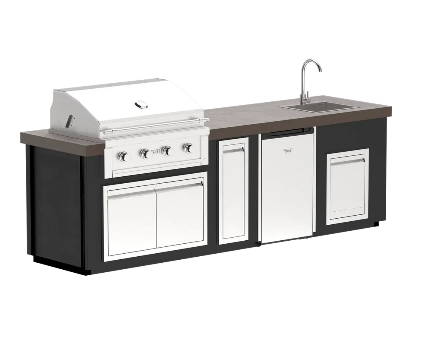 Complete outdoor kitchen with grilling, prep, storage, refrigeration, and cleanup