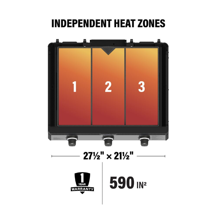 Three Independently Controlled Heat Zones – Cook multiple dishes at different temperatures.