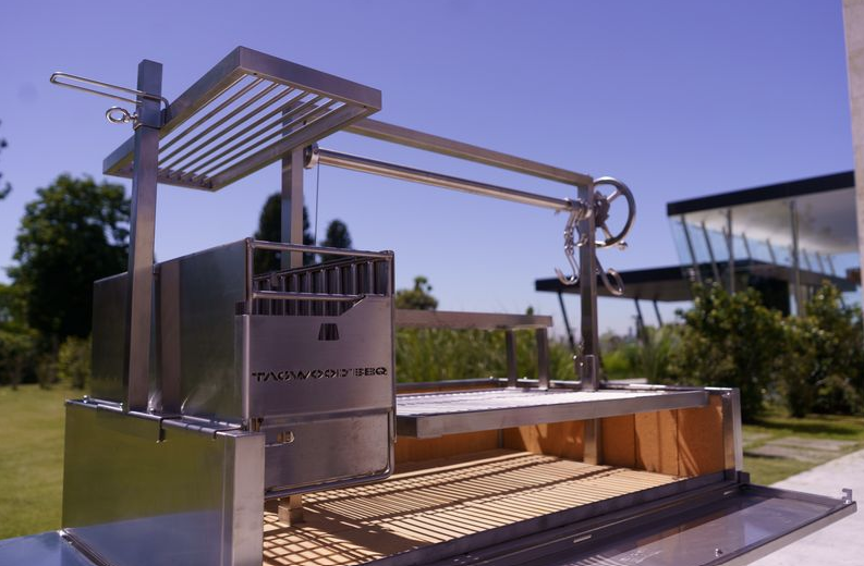 The BBQ23SS XL Santa Maria Grill elevates open-fire cooking with expanded grilling space and enhanced versatility. Built entirely from #304 stainless steel, it offers authentic gaucho performance with durability to match. Featuring a height-adjustable main grate, secondary grate, interchangeable griddle, and S-shape meat hooks, it provides multiple cooking zones for both direct searing and slow roasting.