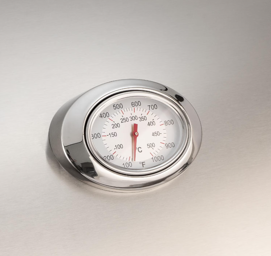 Crafted from 304 stainless steel with a satin finish and comfort-touch control knobs, this grill is built to withstand the elements while offering modern style. The hood integrates an analog thermometer with an angled bezel for easier viewing, while inside, two 16-gauge U-shaped tubular burners produce 46,000 BTUs of consistent cooking power.