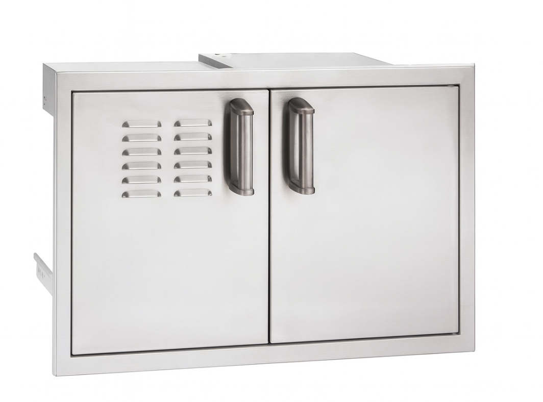 The Fire Magic® Double Doors with Trash Tray & Dual Drawers bring functionality, style, and ventilation to your outdoor kitchen. Featuring two storage drawers and a dedicated tank/trash door, this combination unit makes it easy to keep your outdoor cooking space organized and efficient. The louvered door design ensures proper airflow while maintaining a sleek, flush-mounted look that complements any Fire Magic® grill or component. Built with premium 304 stainless steel and engineered with soft-close technology, it’s designed to last a lifetime of outdoor entertaining.