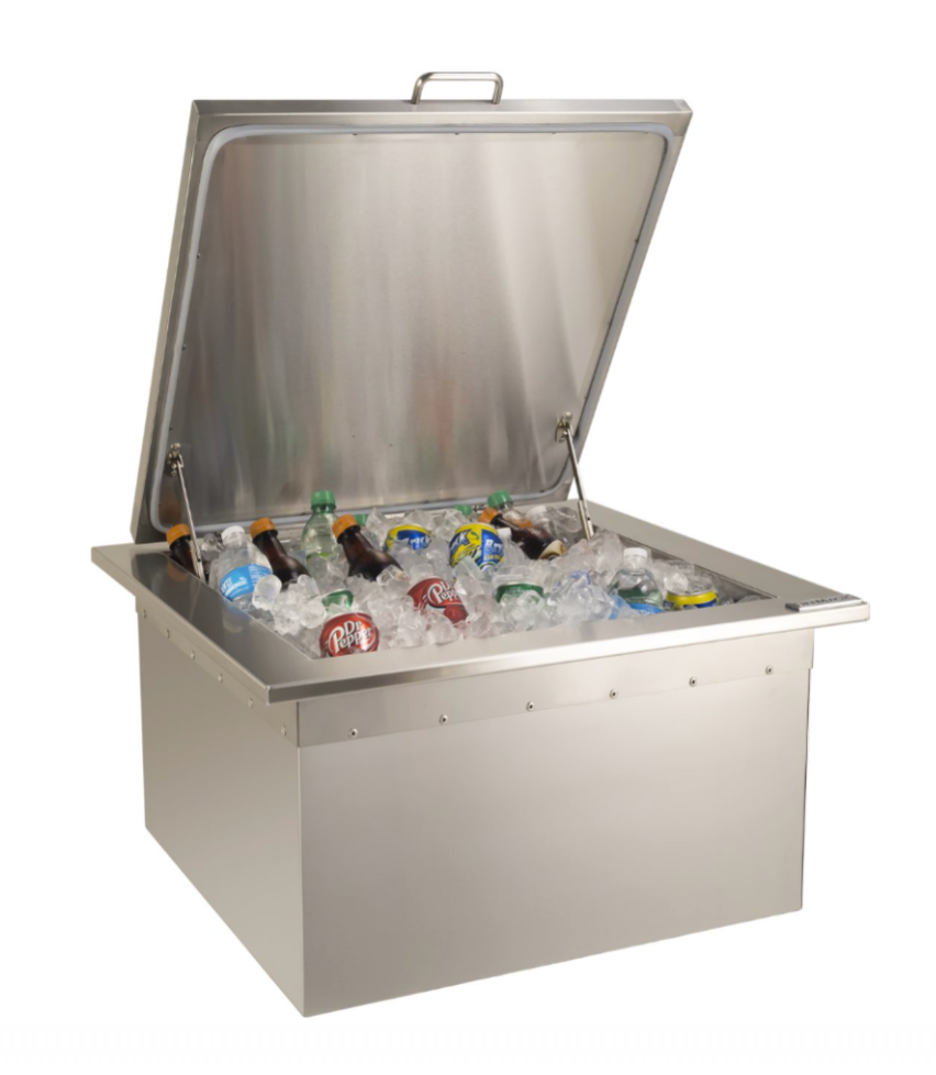 The Fire Magic® Drop-In Refreshment Center is the ultimate addition to your outdoor kitchen, designed to keep beverages ice-cold and ready for any occasion. With its fully insulated bin and lid, this refreshment center holds up to 40 lbs of ice and maintains temperature for hours, ensuring drinks stay frosty during parties, events, or everyday use. Built from durable 304 stainless steel and equipped with a removable, gasketed lid for easy access, it offers both functionality and premium design. A drain kit is included for convenient plumbing connection, making it simple to clean and maintain.