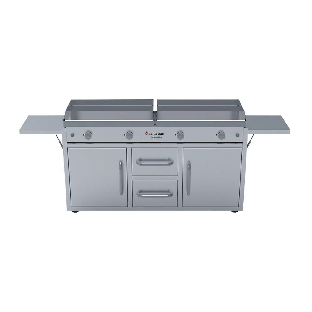 The Grand Texan Freestanding by Le Griddle is a professional-grade outdoor gas griddle built for chefs who value performance, versatility, and luxury design. Set atop a sleek 304 stainless steel cart with fold-down side shelves, this dual cooking surface powerhouse delivers exceptional heat control and effortless mobility.